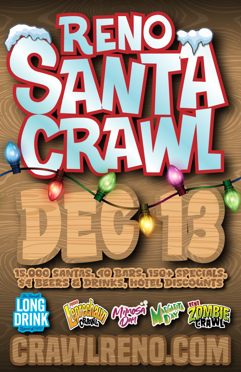 Each year 15-20,000 Santas party together in Reno, NV for this “bucket-list” event enjoying over 150 specials at over 40 venues. Established in 2001, The world-famous Reno Santa Crawl is one of the largest, longest running & best-run events of its kind!
